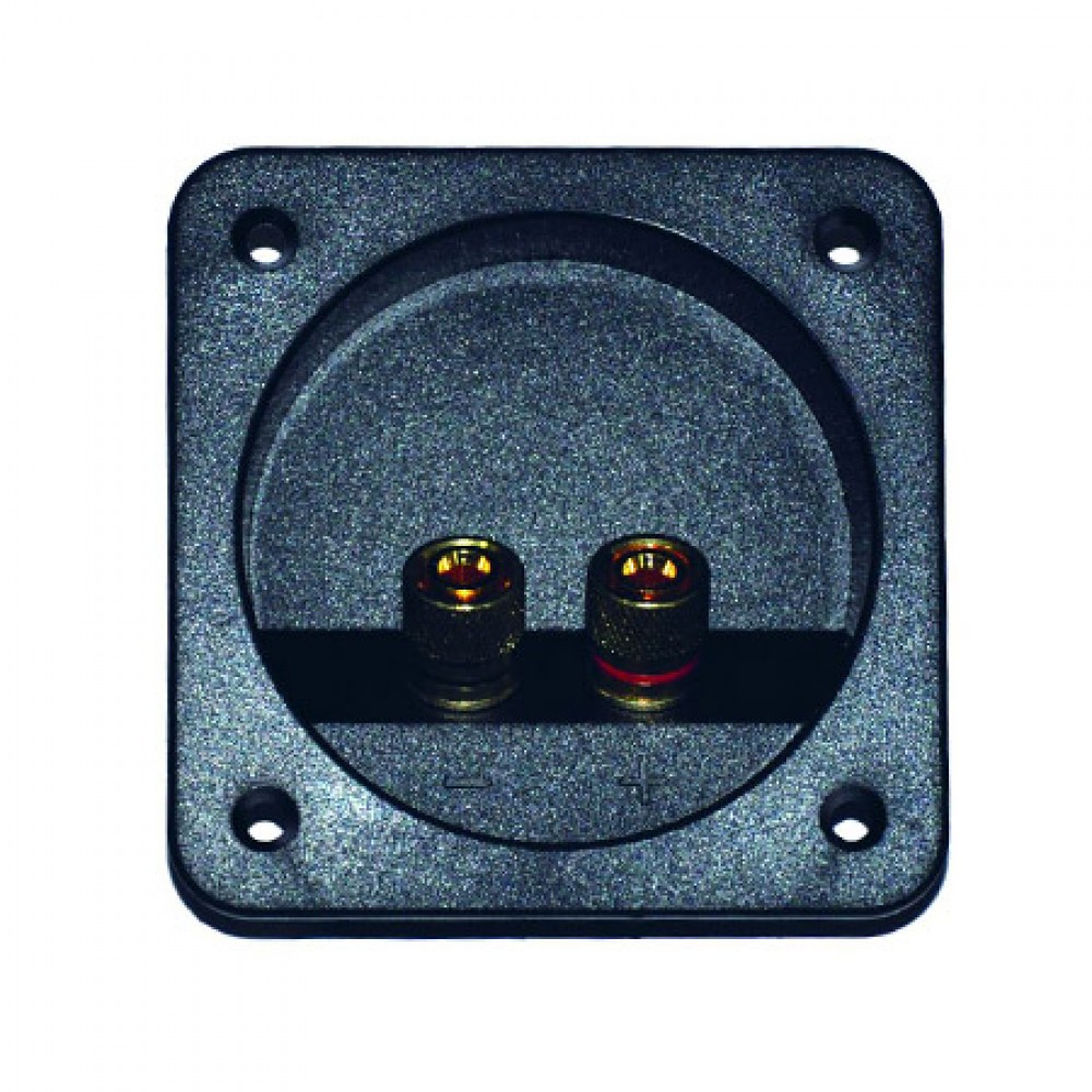 Conector patrat pentru difuzoare, 2 conectori auriti tip banana (1 difuzor), montare pe panou.