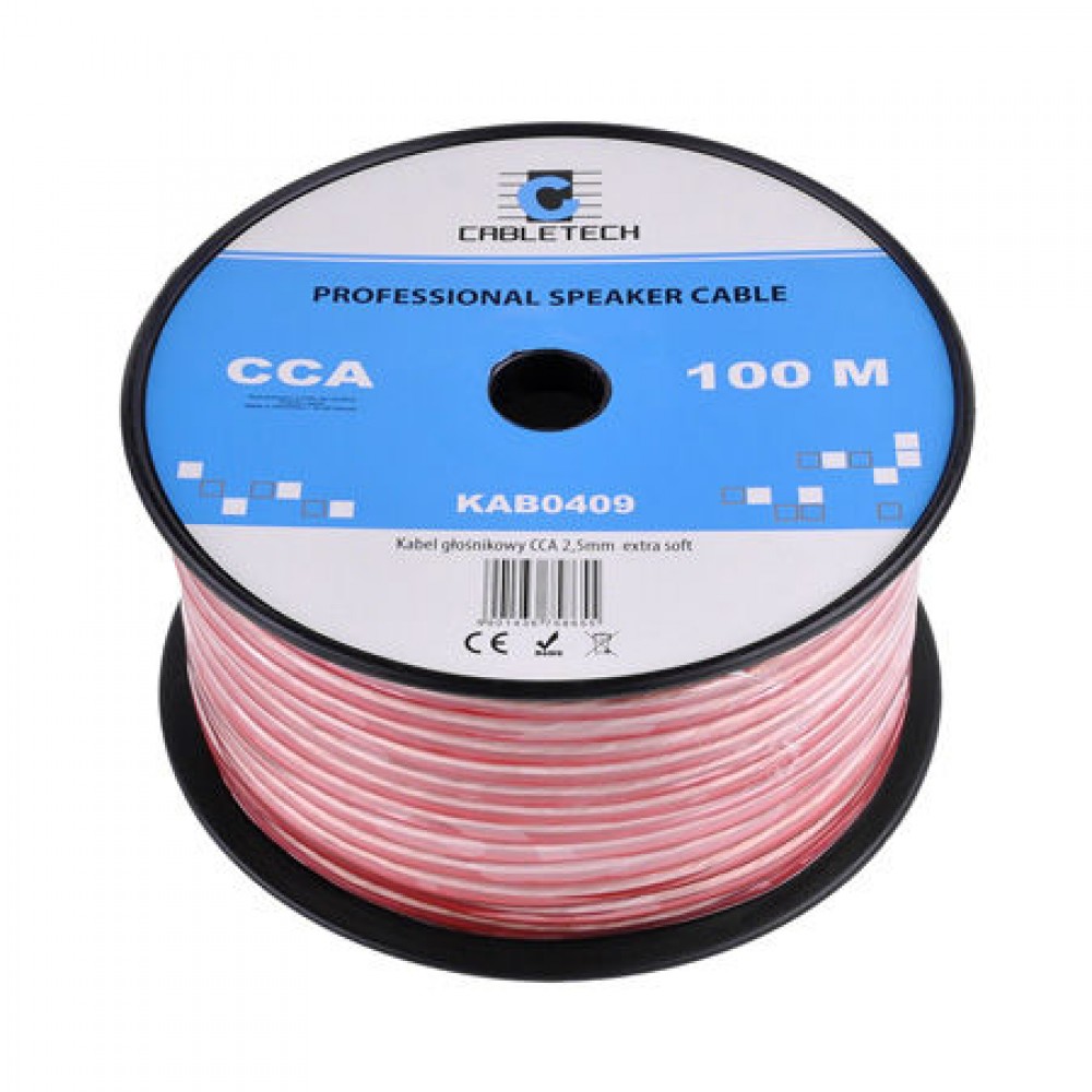 Cablu professional pentru difuzor, material CCA, foarte flexibil. Fir: 2 x 2.50 mm2 Culoare: alb-rosu Rola de 100m. Ambalare: 2 role/cutie