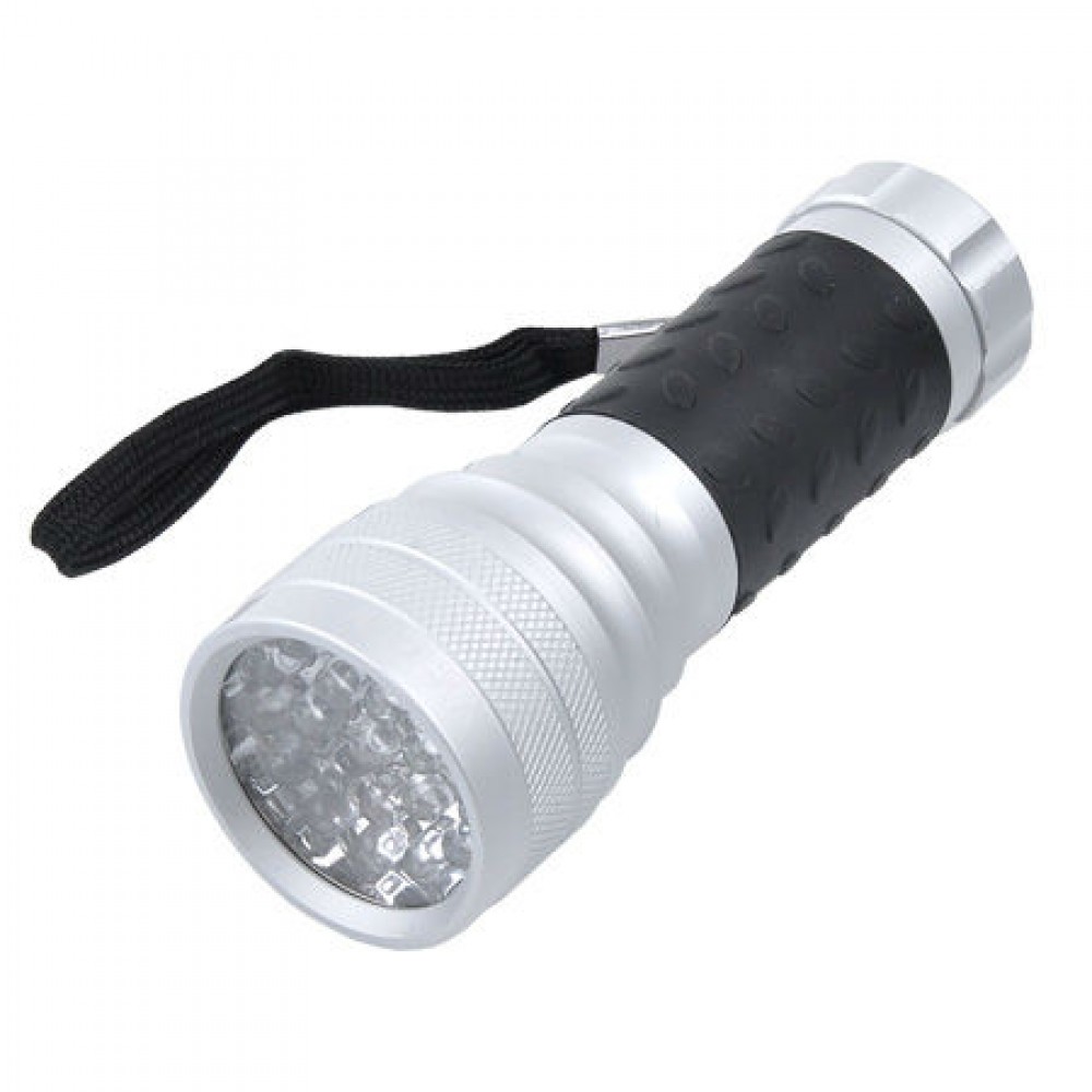 Lanterna de mana cu 21 LED-uri super-luminoase Durata de viata LED-uri de pana la 100 000 ore Carcasa de aluminiu Lungime: 11cm Diametru: 4 cm Baterii: 3 x AAA (nu sunt incluse)