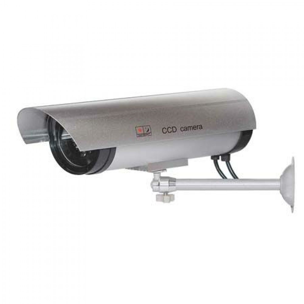 Camera de supraveghere falsa, de inalta calitate, echipata cu un LED rosu care lumineaza intermitent.