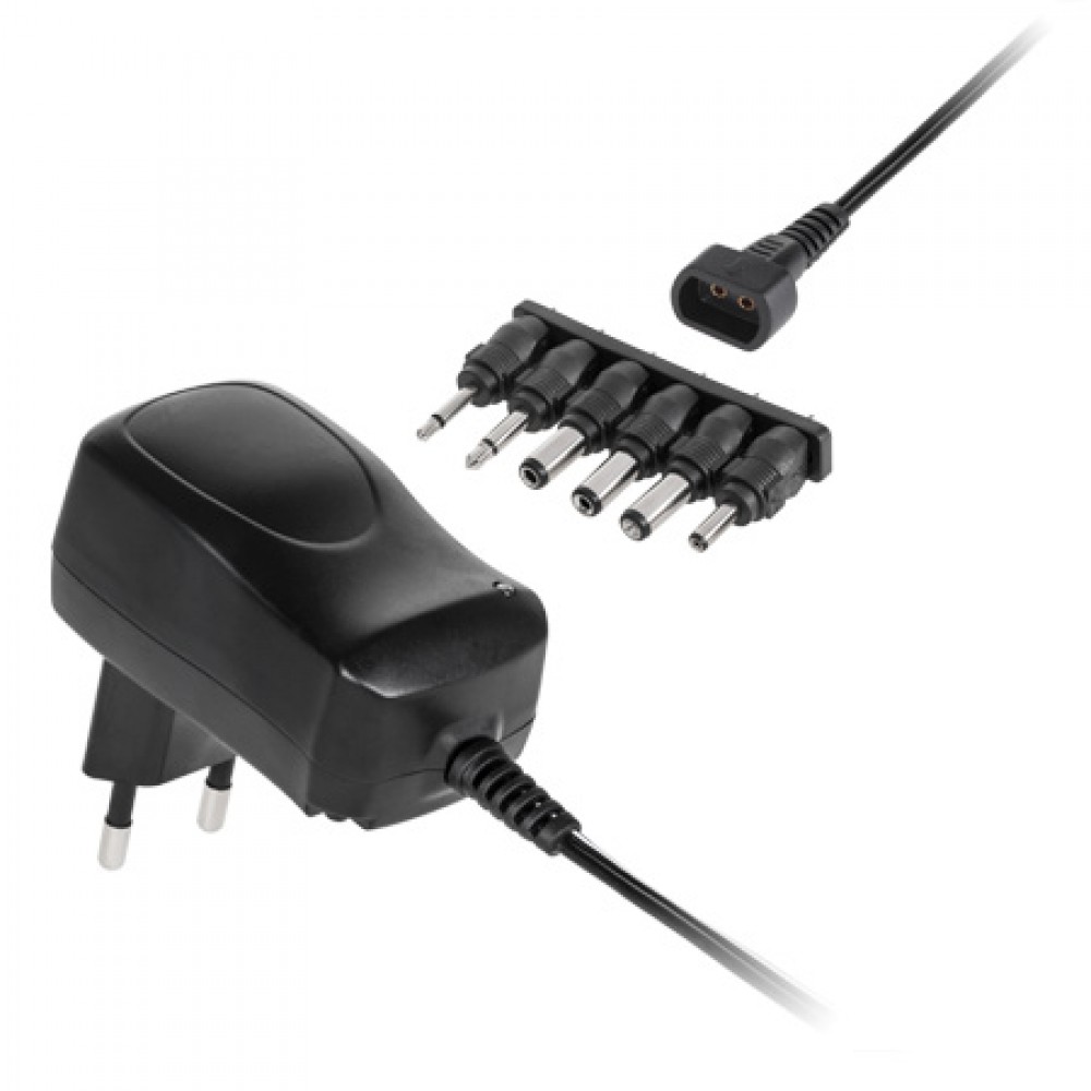 Alimentator stabilizat reglabil, pentru dispozitivele care nu au nevoie de un curent mai mare de 500mA - LED indicator - Alimentare: 230 VAC 50Hz - Curent: max. 500mA - Tensiuni de iesire: 3V, 4.5V, 6V, 7.5V, 9V, 12V DC - Comutator pentru schimbarea polaritatii - 6 mufe de alimentare universale