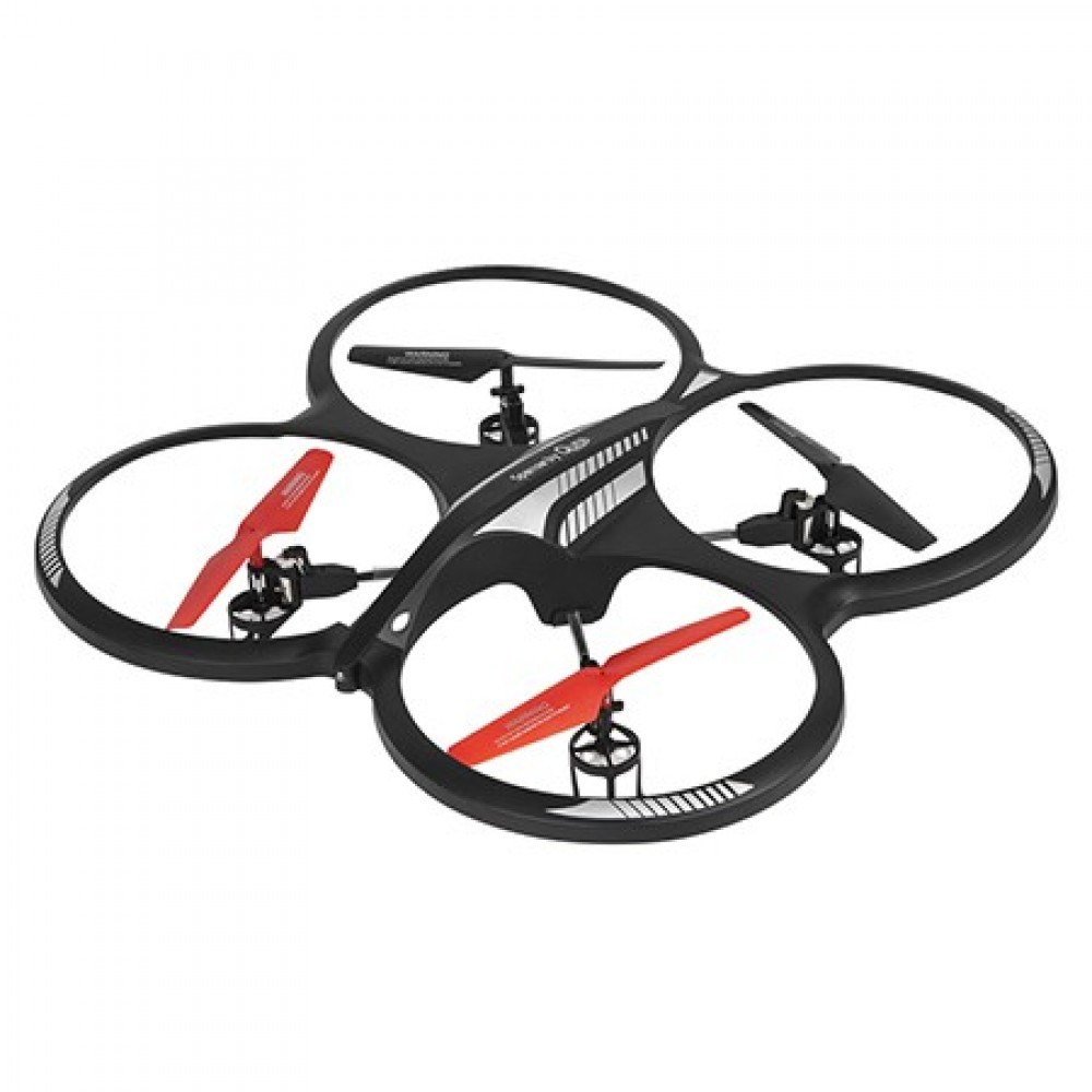 Stabilizator giroscopic pe 6 axe Ideal pentru acrobații aeriene Telecomanda pe distanțe lungi (2,4 GHz); la 100 m 3 viteze 2 moduri de control Destinat utilizarii în aer liber sau in interior Alimentare telecomanda: 4 baterii AA Alimentare drone: 2 baterii reîncărcabile 3.7 V Li-polimer Timp de încărcare: ~ 120 minute Dimensiuni (cm): 33 x 33 x 8